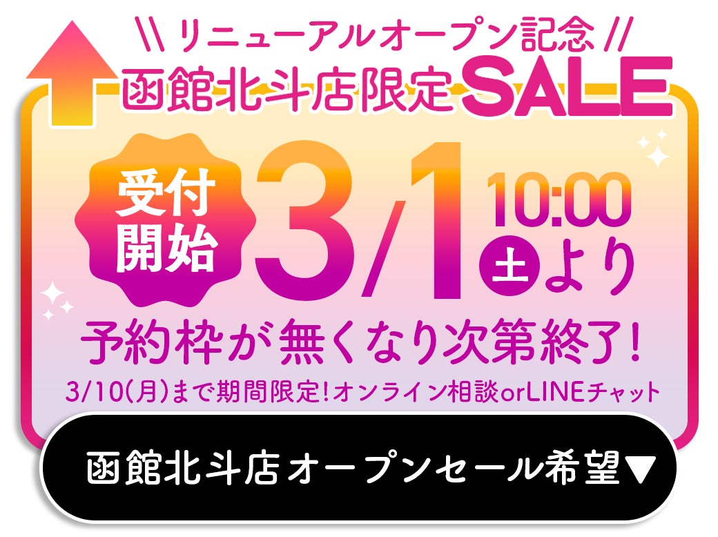 【3月1日リニューアルオープン】函館エリア店舗統合し進化へ。函館北斗店オープンを記念して、セールイベント開催中。