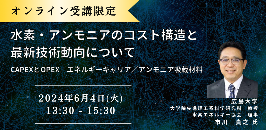 【JPIセミナー】「水素・アンモニアのコスト構造と最新技術動向について」6月4日(火)開催<オンライン受講限定>