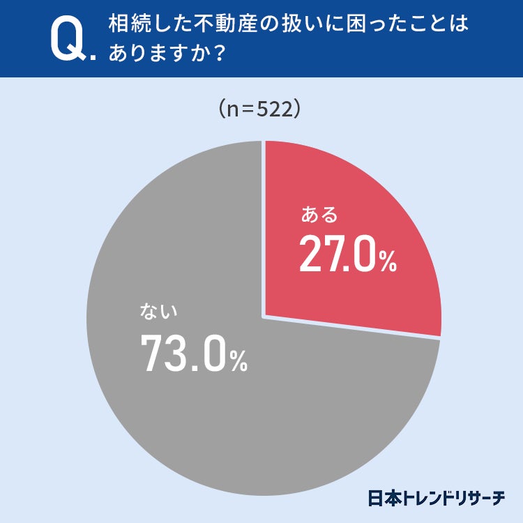 27%の方が、相続した不動産の扱いに困ったことが「ある」と回答しています。