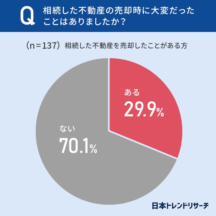 29.9%が、相続した不動産の売却時に大変だったことが「あった」と回答しています。