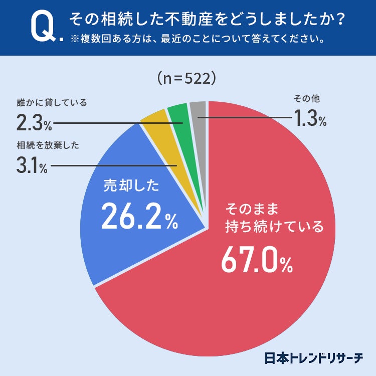 67%の方が、相続した不動産を「そのまま持ち続けている」と回答しています。