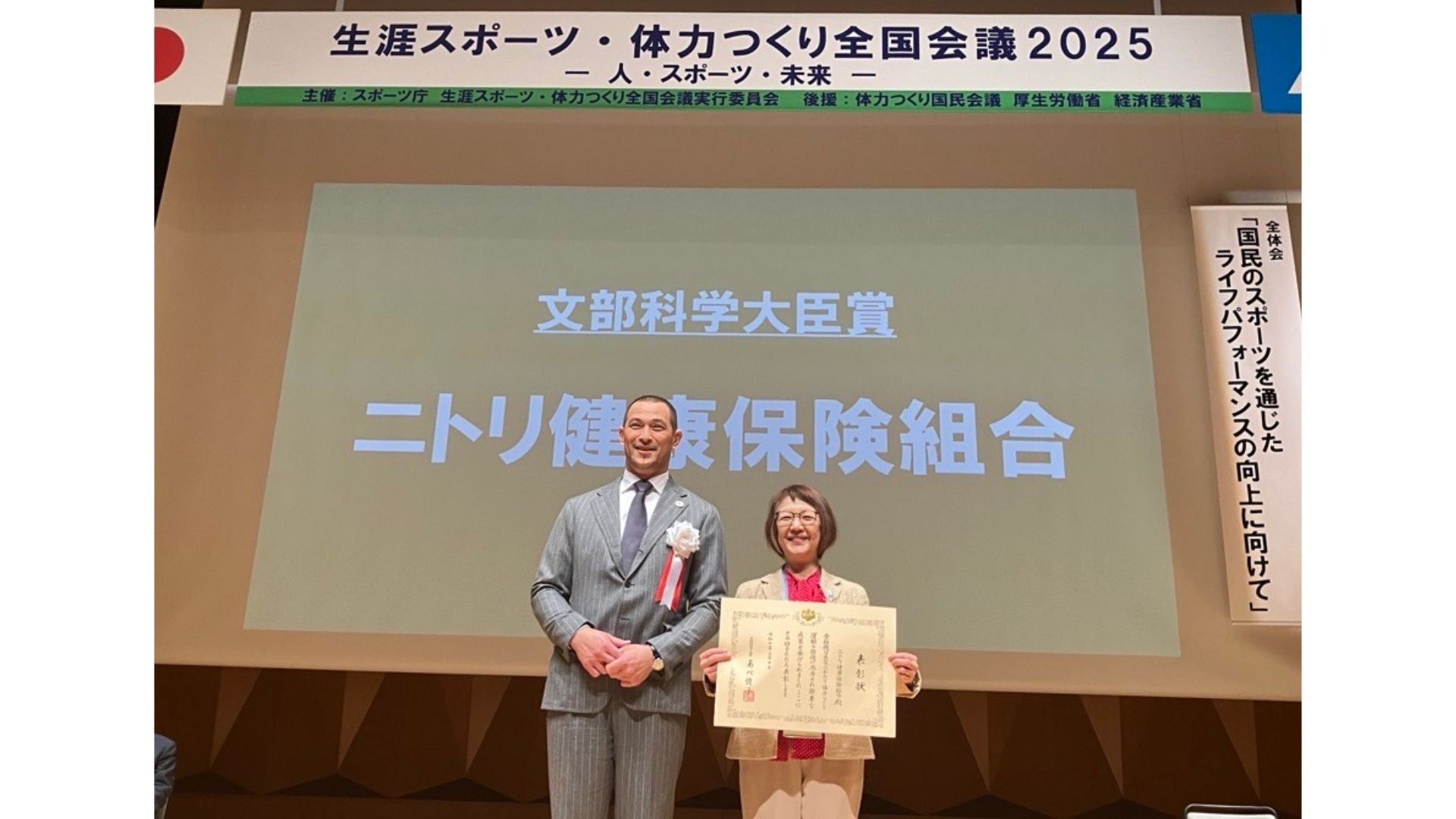 ニトリ健康保険組合は、平成30年度の「国民会議議長賞」受賞に続いて、今回初めて「文部科学大臣賞」を受賞しました。