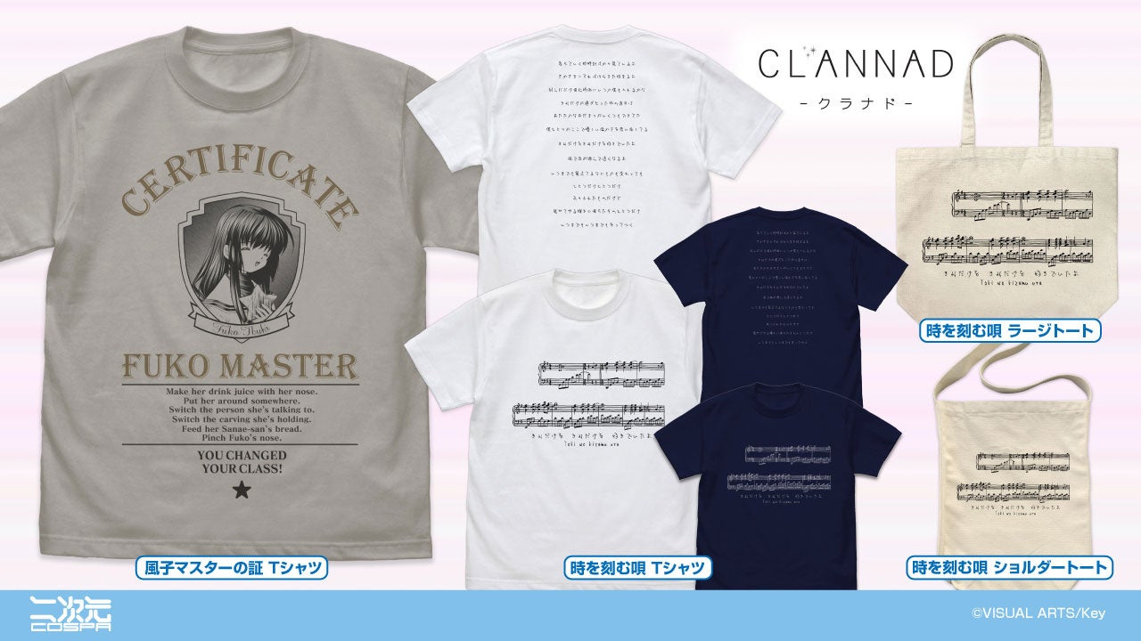 『CLANNAD-クラナド-』より、すべてのスキルを極めたあなたへおくる “風子マスター”の証明書をイメージした「風子マスターの証 Tシャツ」をはじめ、「時を刻む唄 Tシャツ」など新グッズが二次元コスパから登場です。