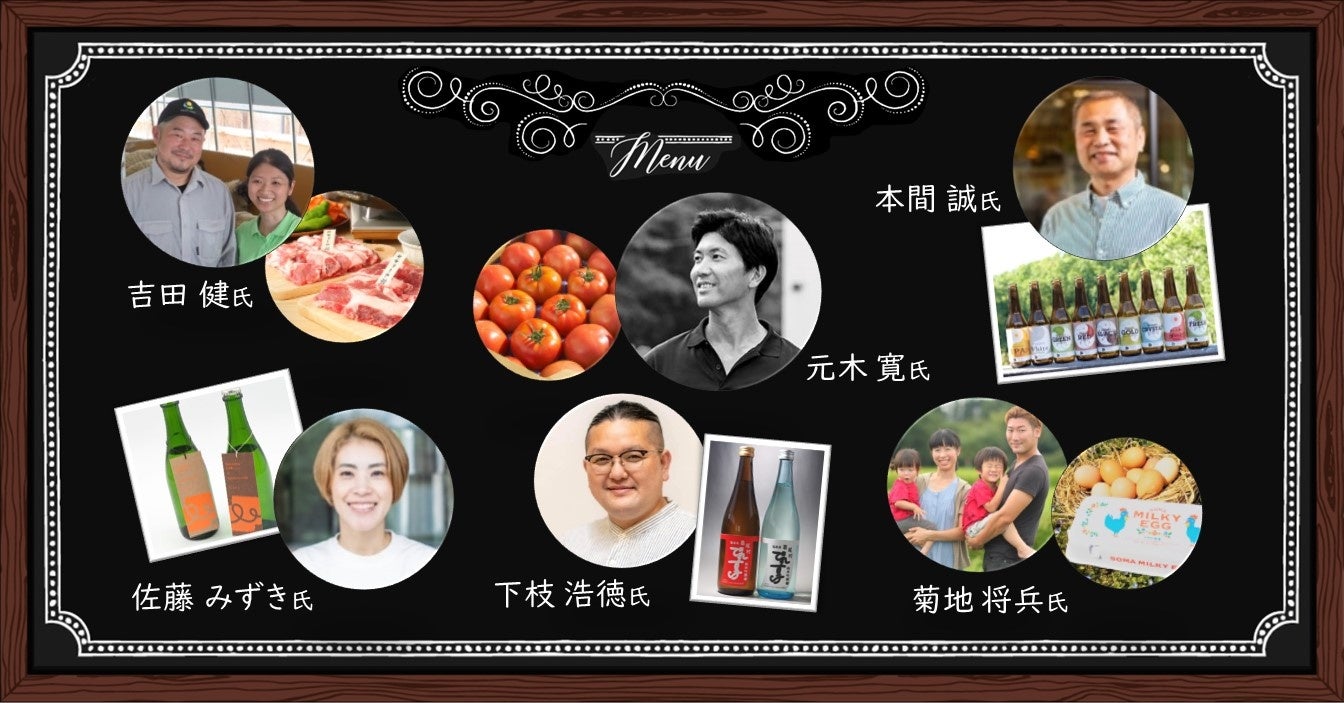 本イベントでは福島県浜通りで活躍される生産者の皆さんの中から、いわき市でトマトの6次産業化に取り組む元木寛氏、相馬市で食育にも取り組みながら農園を営む菊地将兵氏、国内流通の約1%しかない「国産羊肉」のブランド化を葛尾村で取り組む吉田健氏(食材提供のみ)、田村市産のホップだけを利用したクラフトビールと公共施設「グリーンパーク都路」を手掛ける田村市の本間誠氏、葛尾村で農業体験や特産品の6次産業化など多岐にわたる取り組みを展開する下枝浩徳氏、そしてホップを使った花酛(はなもと)の製法による日本酒づくりに取り組む南相馬市の佐藤みずき氏にご協力をいただきました。また、現在「グリーンパーク都路」のオートキャンプ場は冬季休業のところ、イベント開催の主旨にご賛同いただき、イベント当日は特別運営として実施いたします。
