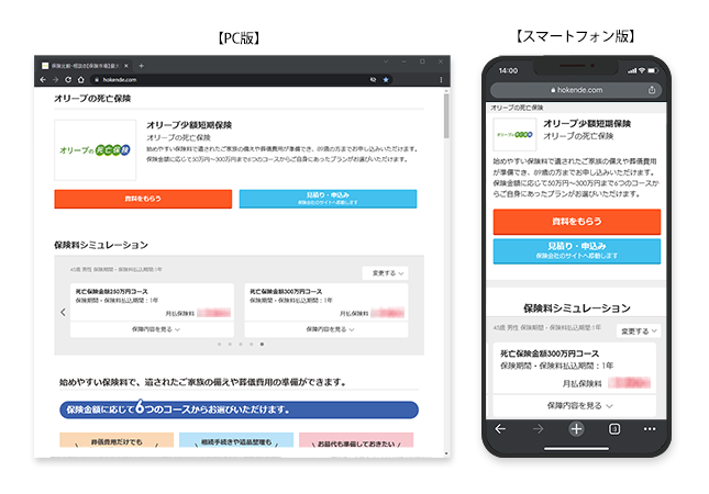 保険選びサイト「保険市場」に掲載を開始したオリーブ少額短期保険の『オリーブの死亡保険』『オリーブの一時金保険』は、通信販売・インターネットでお申し込みいただける保険商品です。「保険市場」PCサイトおよびスマートフォンサイトにて、商品の詳細をご確認いただけます。