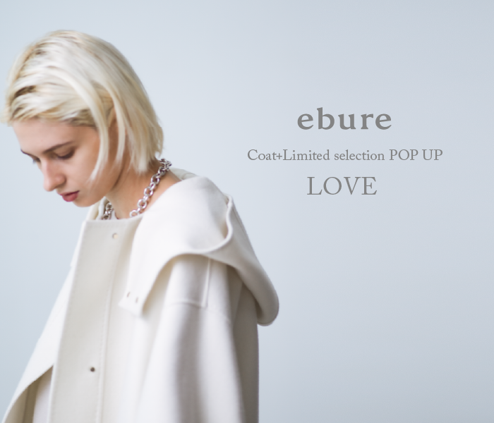 このたび、10月12日(水)~18日(火)の期間、伊勢丹新宿店3F特設ステージにて、一部先行発売アイテムを含むPOPUPを開催。ブランド初となるダウンをはじめ、今季のコートコレクションが揃います。アクセサリー、キャンドルなどebureの美学に通じるセレクトアイテムと共に、ジョージナカシマの家具を配した特別な空間でお迎えいたします。