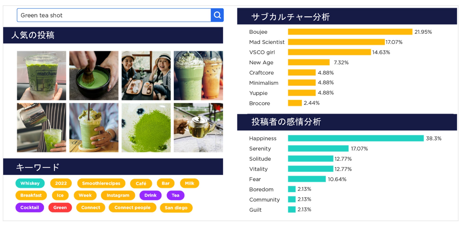 ソーシャルメディアの投稿から、生活者の感情や深層的な文脈を解析します。