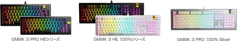 株式会社アスク(本社:東京都千代田区)は、Glorious社製のゲーミングキーボード「GMMK 3 PRO HE」シリーズ、「GMMK 3 HE 100%」シリーズ、「GMMK 3 PRO 100% Silver」の計6製品のほか、カスタマイズパーツとなるベアボーン、キースイッチ、キーキャップの計22製品を発表いたします。