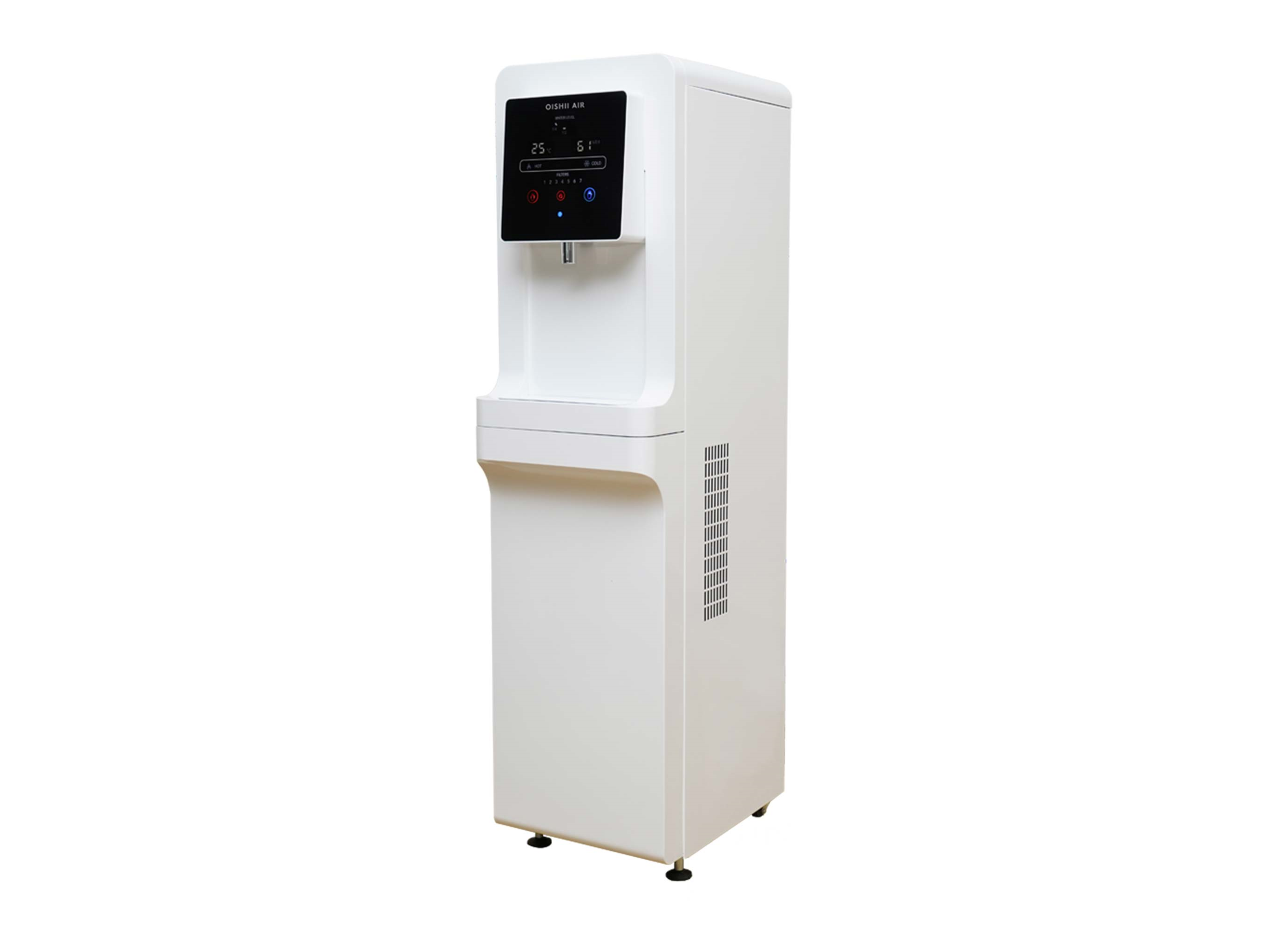 OISHII AIRは世界のどこでも、空気と電気があれば水を創りだすことができます。真の持続的社会を考えなければいけない時代に直面し、水に困らない生活環境を全ての人に与え、持続化社会の実現を目指して開発されました。6層フィルター+定期循環機能、UV殺菌機能により公共施設、病院、避難所、ホテル、オフィス、工場、イベント会場など、安全で清潔な水が必要なあらゆる場面で活躍します。