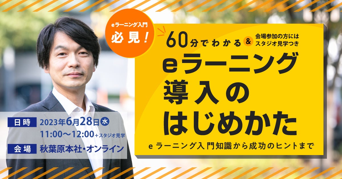 「eラーニング導入のはじめかたセミナー」eラーニング入門知識から成功のヒントまで《5/25(木)・6/28(水)秋葉原会場&オンライン開催》会場参加の方はスタジオ見学も!
