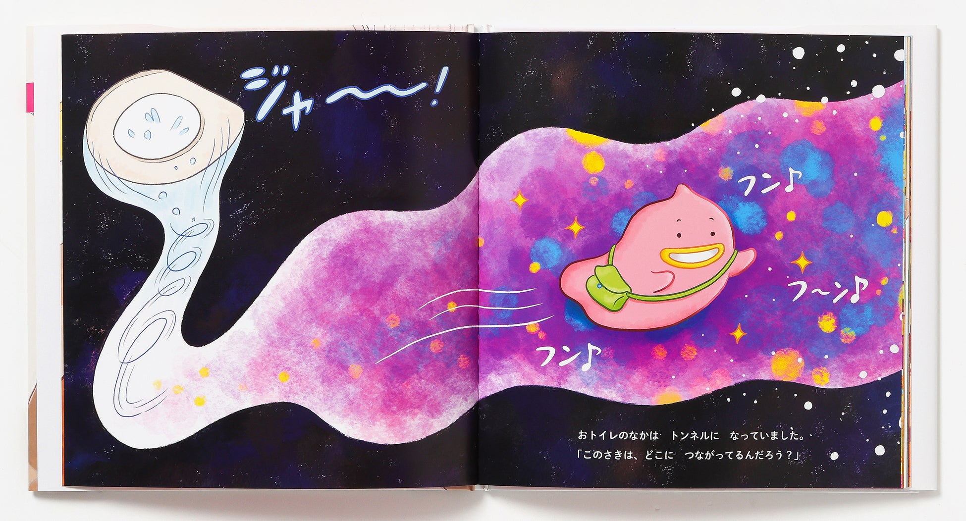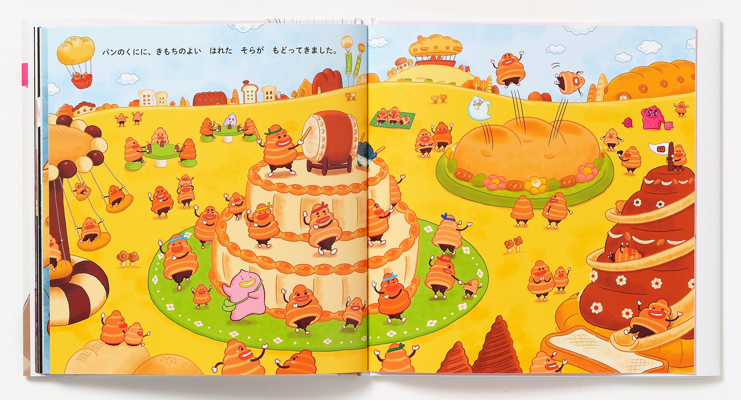 うんぴーはカイくんのうんち。ある日、きゅうくつなおむつの中からトイレへ飛び出しました。トイレのトンネルは、おいもやおばけなど、色々な国とつながっています。パンの国では、うんぴーがパン達の手助けをすることに。トイレにいくのが楽しみになる絵本。