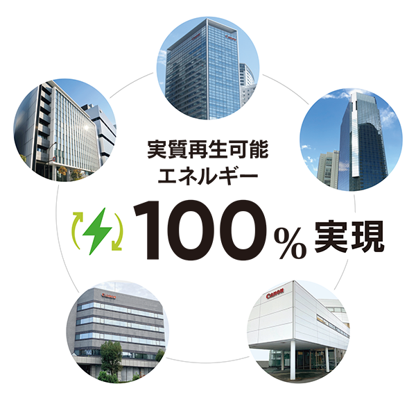 本社・自社ビルを含む5拠点において使用電力の実質再生可能エネルギー100%を実現