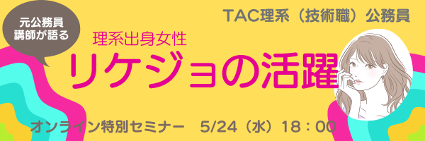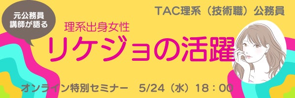 公務員、日商簿記検定、税理士、公認会計士などの資格取得に向けた教育サービスを展開しているTAC株式会社(東京都千代田区、代表取締役社長:多田敏男)は5/24(水)、理系出身の女性に焦点を当て、公務員としての働き方はもちろん、ワークライフバランスを保つために重要視すべきことを、元東京都職員(土木)の矢島講師がオンラインで語ります。