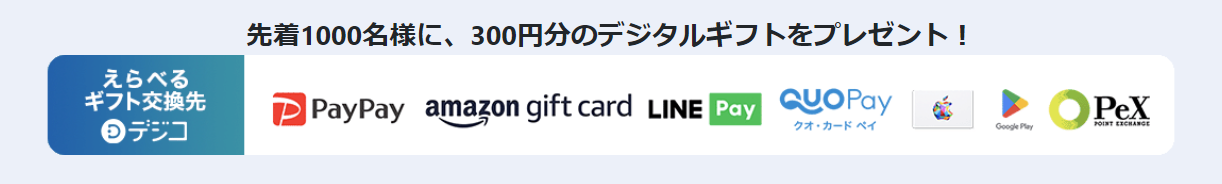 先着1000名様に、300円分のデジタルギフトをプレゼント!