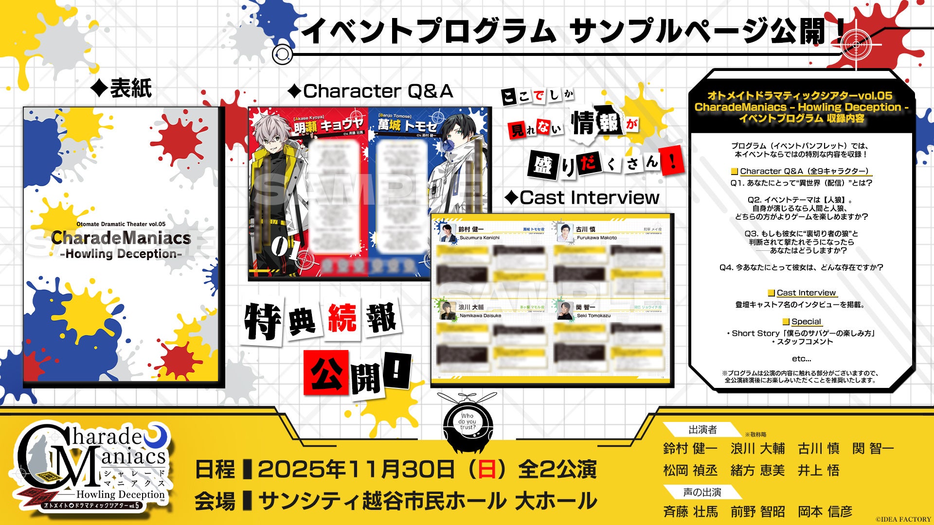 オトメイトドラマティックシアターvol.05「CharadeManiacs -Howling Deception-」イベント物販ラインナップ&プログラムサンプルページ公開!