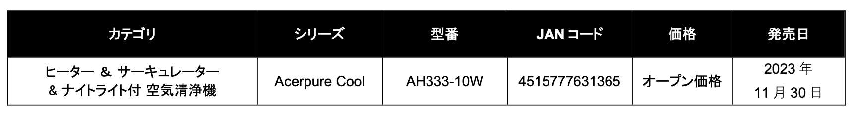 さらにコンパクトになり、ヒーターとナイトライトを搭載したAcerpure Cool「AH-333-10W」が安心機能を搭載し本日より発売!