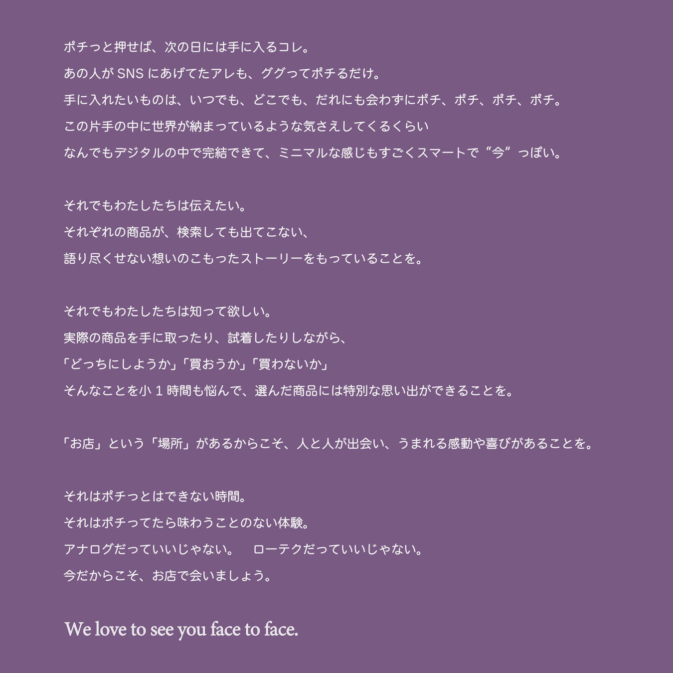 「お店」でお会いするのを心より楽しみにお待ちしております。