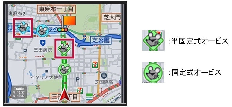 従来の固定式オービス表示に加え、半固定式オービスの表示にも対応しました。