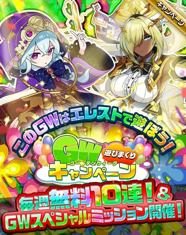 『エレメンタルストーリー』が、GWキャンペーンを開催!最大30連無料召喚可能な「毎週無料10連召喚」や、★5モンスターが無料で手に入るログインボーナスなど!GWはエレストで遊びまくろう!