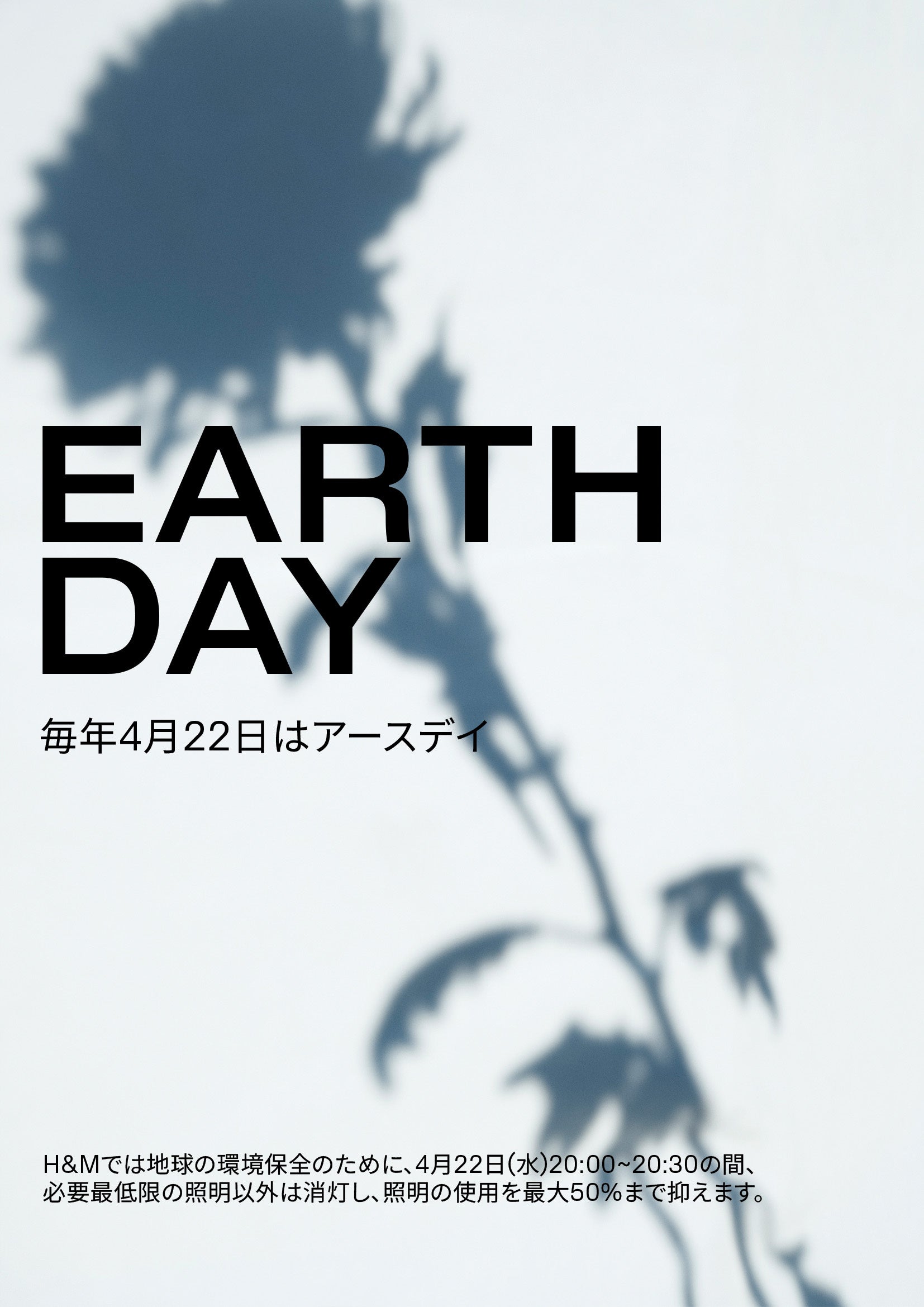 H&Mは、アースデイ56周年を記念し、4月22日にサステナビリティに関する取り組みを実施します。4月22日(水)20:00より30分間、日本国内の一部対象店舗にて、店内照明を最大50%減光いたします。