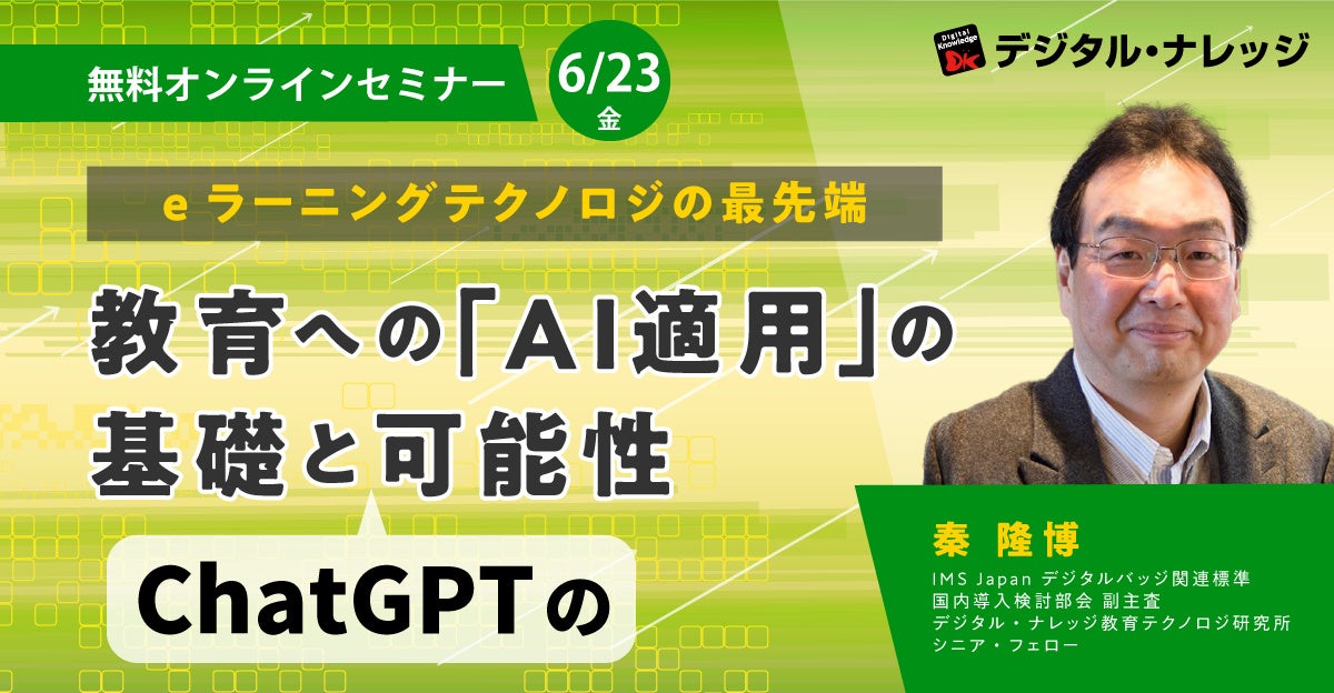 話題の「ChatGPT」の教育への適用もご紹介!教育へのAI適用 中級編 ≪5/26(金)・6/23(金)デジタル・ナレッジ教育テクノロジ研究所 主催オンラインセミナー≫