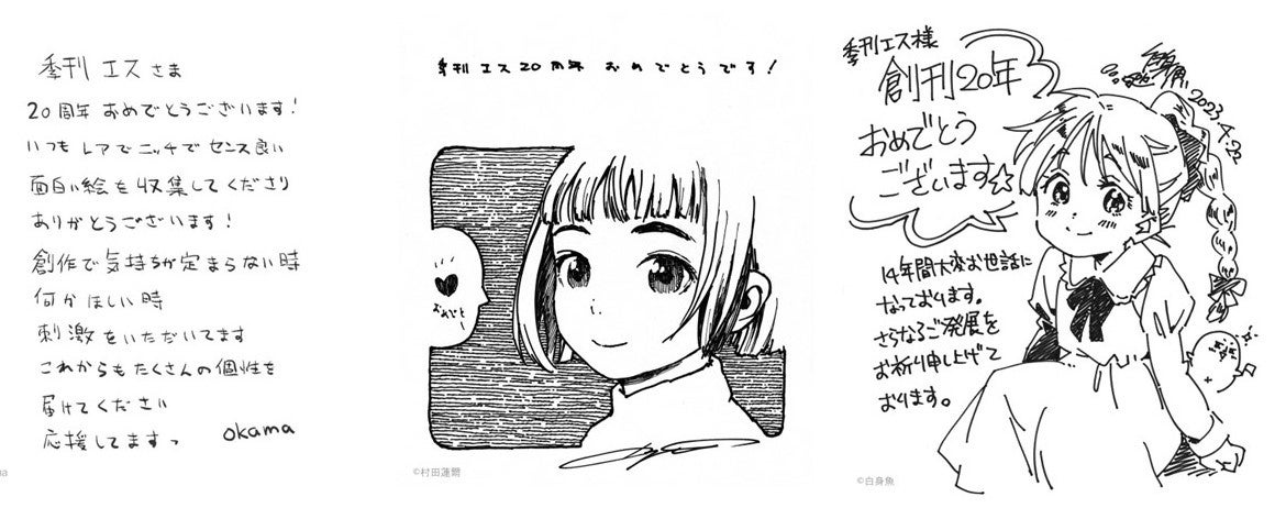 エス編集部20周年を記念して原宿のデザインフェスタギャラリーで開催された「イラストフェスSP」のパネルの一部を、「京都国際漫画・アニメフェア2023」でも展示いたします。