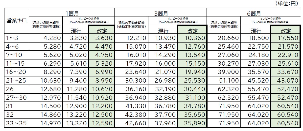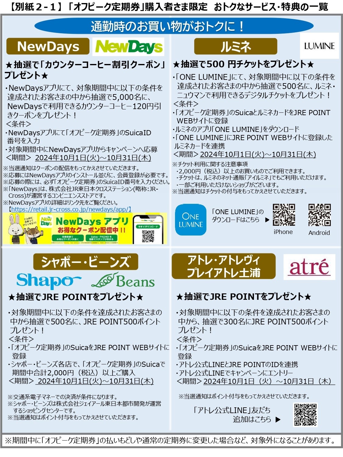 1.2024年10月1日発売分より「オフピーク定期券」を値下げ!(別紙1)