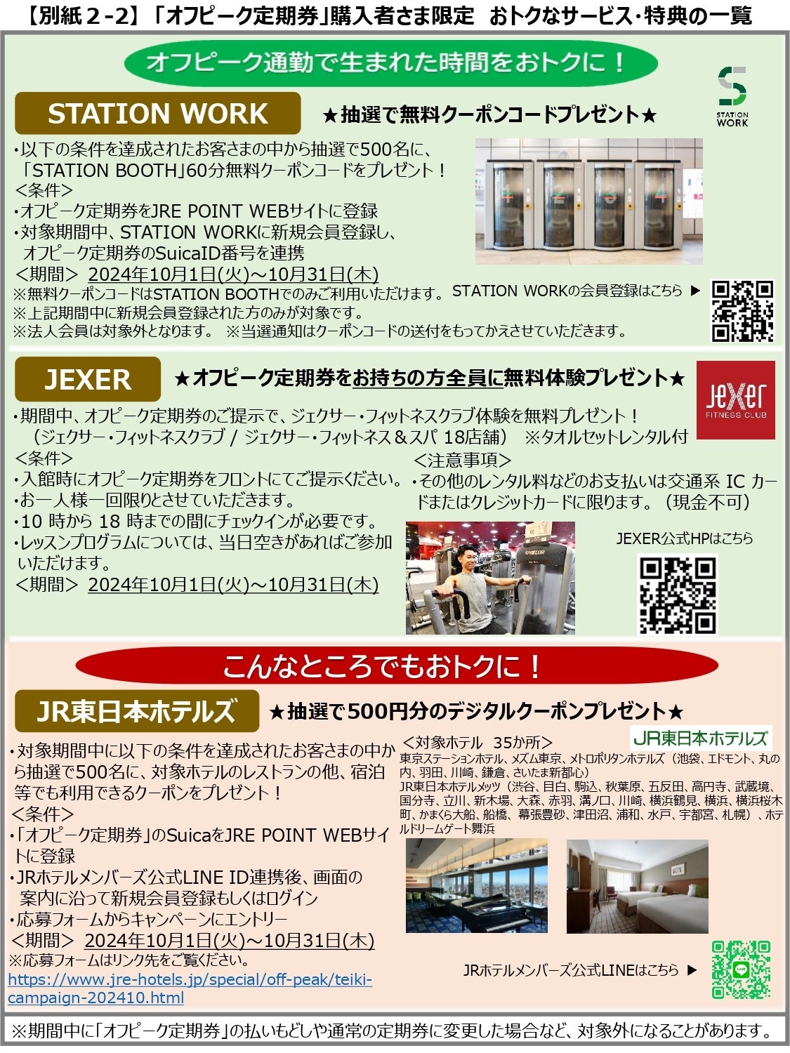2.オフピーク通勤を快適にするおトクな特典が多数!(別紙2)