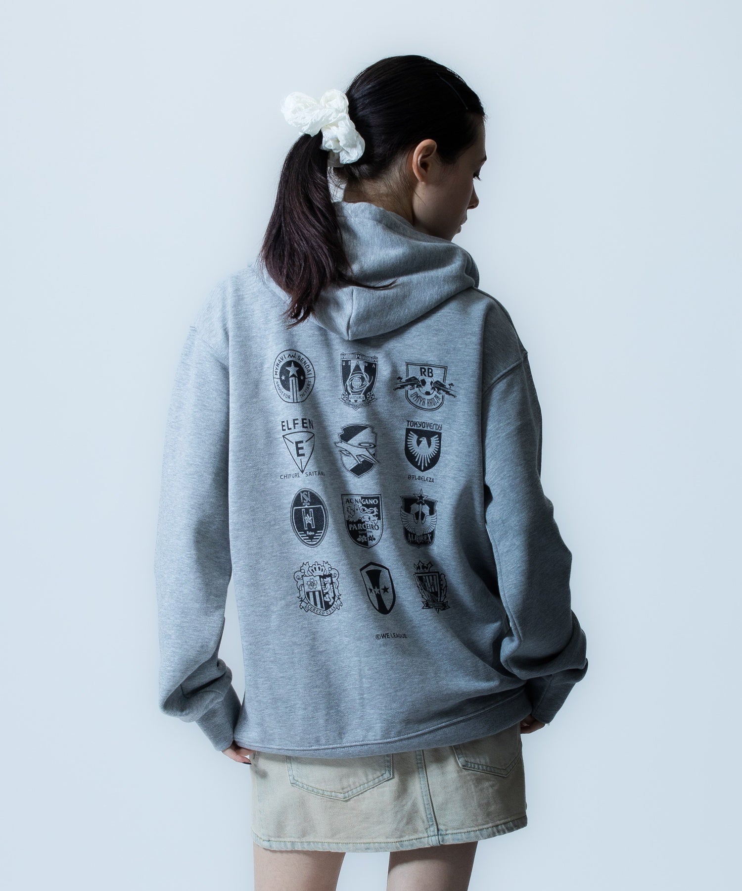 WEリーグに加入する全12クラブのエンブレムを落とし込んだTシャツとフーディ。Tシャツのフロント部分には『X-girl×WE LEAGUE』のロゴと共に、女性の可能性を拡張させる希望を表すメッセージ『WEAR THE HOPE』をプリントした。普段着として着られるシンプルなカラー展開とデザインが魅力。