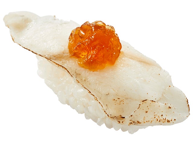 『北海道産フグ塩炙り ポン酢ジュレのせ』一貫110円(税込)