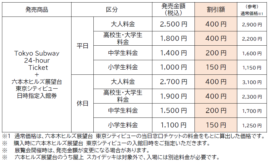 旅行者向け企画乗車券「Tokyo Subway Ticket」と観光施設入場券のセット発売詳細
