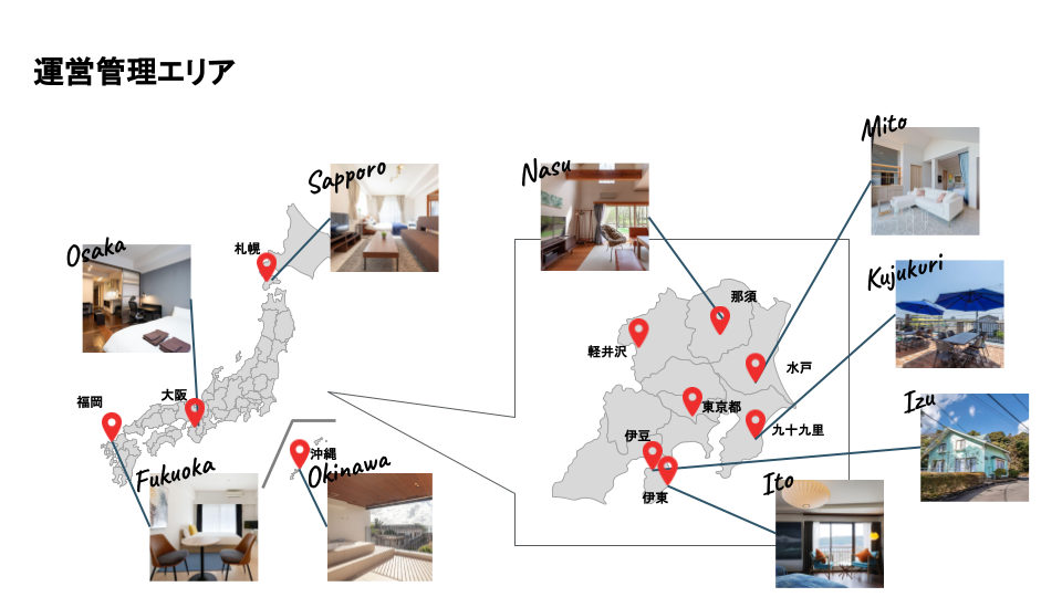 「S-villa」は、那須、伊豆、九十九里、軽井沢などを中心に貸別荘を展開する地方型宿泊施設ブランドです。ソフトウェアの導入で別荘を無人で運営し、貸別荘として活用します。