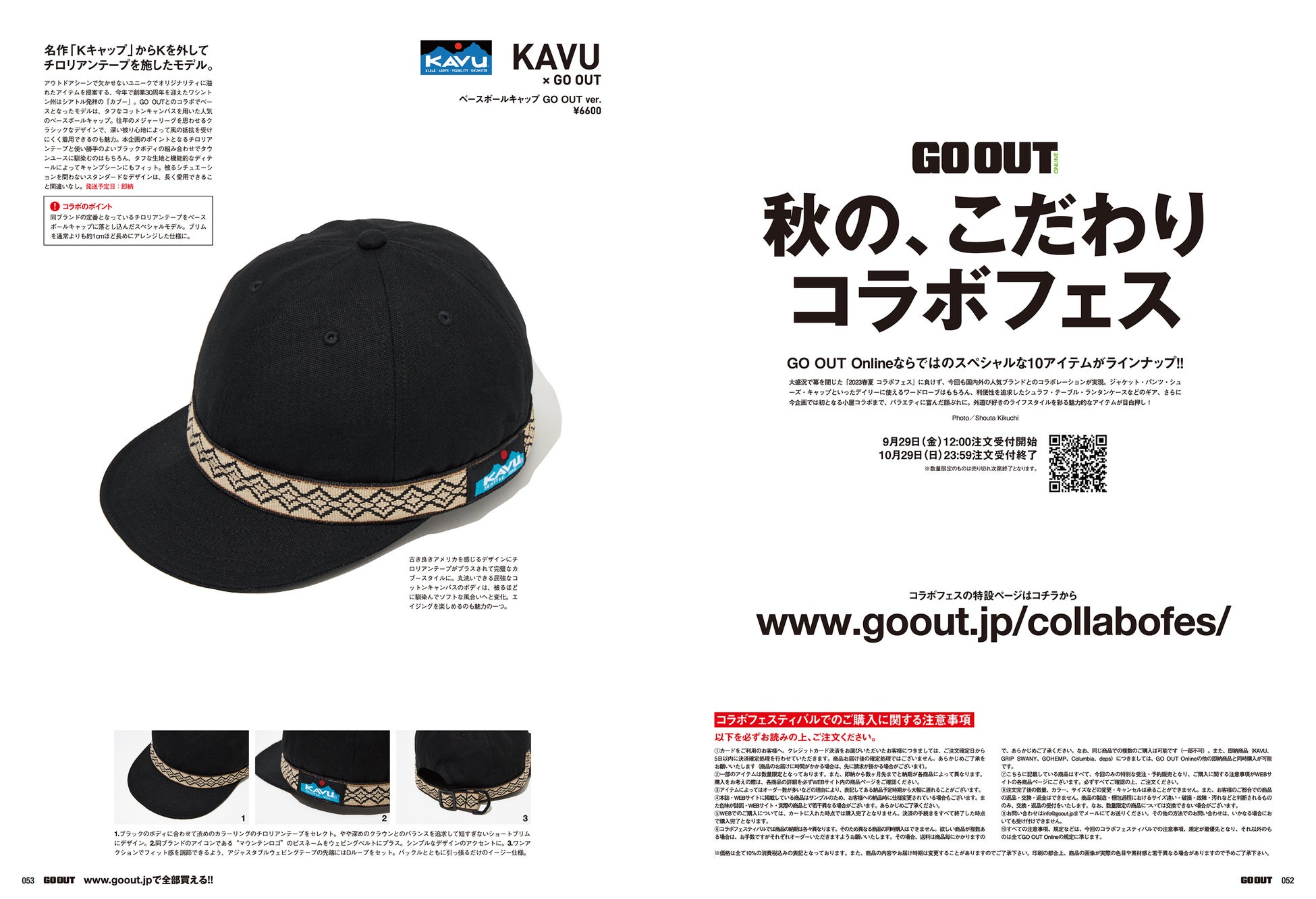 また、GO OUT CAMP関西で見つけた、「高感度キャンパーのSTYLE拝見」と、オーナーのこだわりが光る「ギア的愛車拝見」のほかに、人気&実力派ブランドにスペシャルオーダーしたGO OUT Online「秋のコラボフェス」と、今月も盛りだくさんでお届けします。