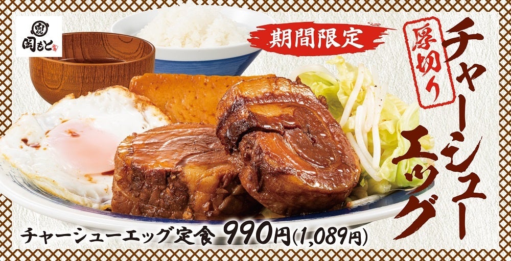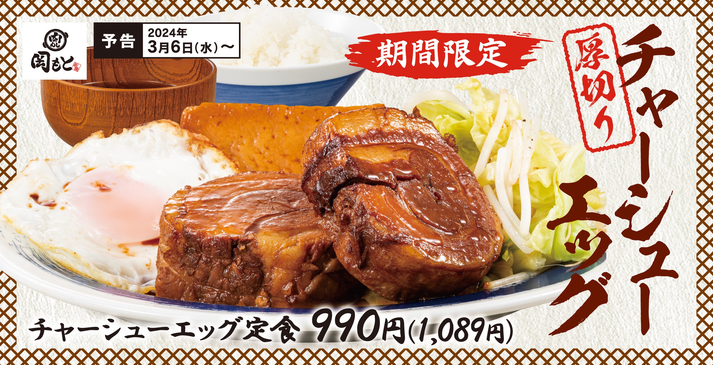 じっくり煮込んだ肉・豆腐が主役の「肉めし岡もと」にて、初の定食限定メニュー「チャーシューエッグ定食」を2024年3月6日(水)より期間限定で販売開始いたします。