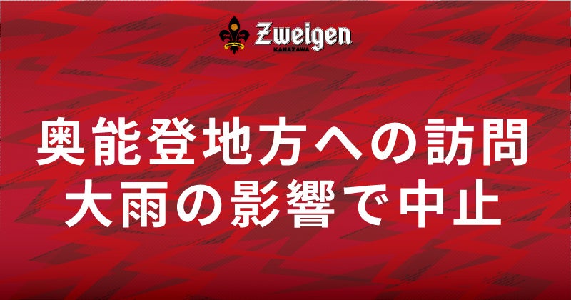 【開催中止のお知らせ】J3ツエーゲン金沢|奥能登地方への訪問は大雨の影響で中止