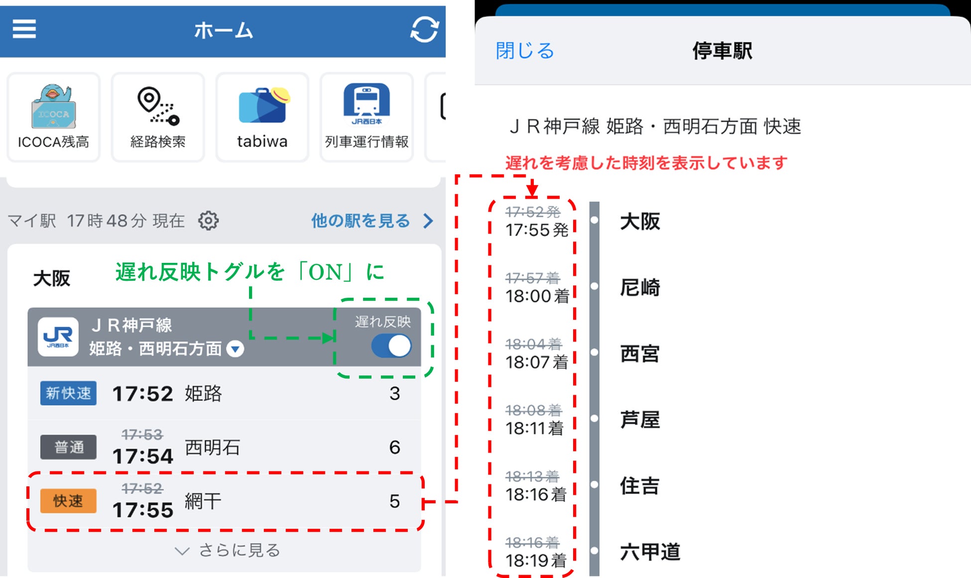 NEWS 02 「マイ駅」でのリアルタイム遅れ反映機能をJR神戸線へ拡大