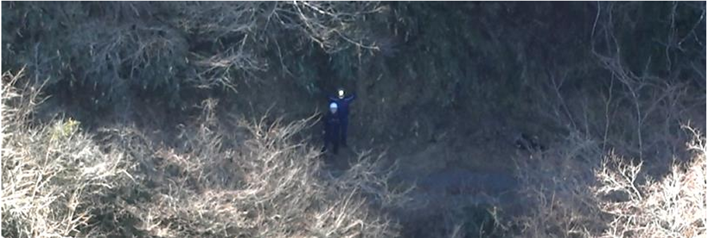 <要救助者を発見し、周辺環境等とあわせて確認(要救助者から85m離れた位置より撮影)>