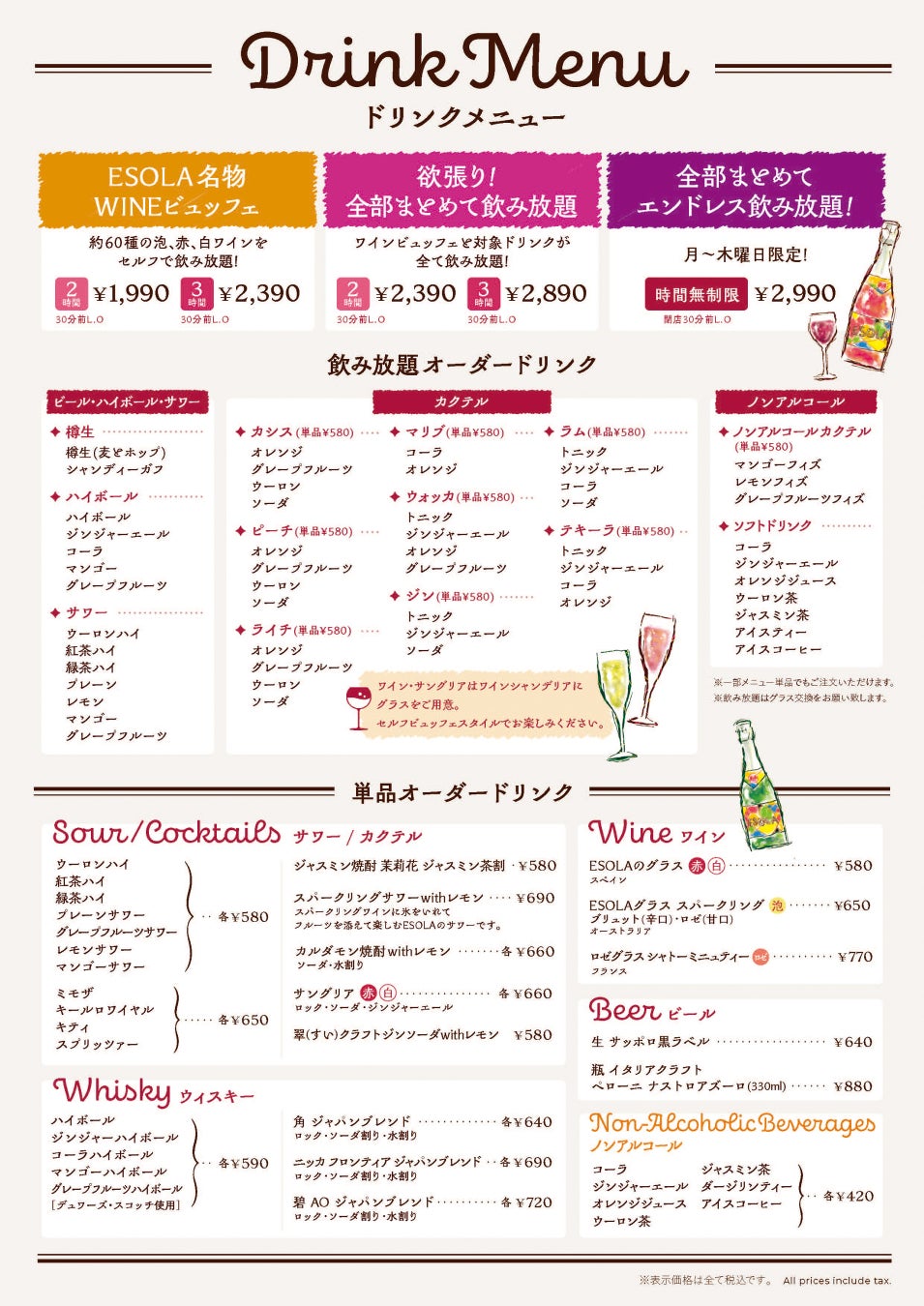 ワインビュッフェと対象ドリンクが全て飲み放題!