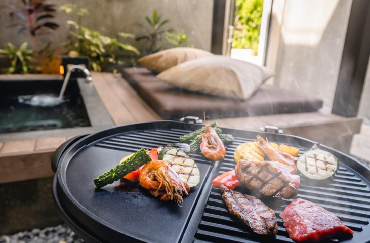 冬でも平均気温が17度前後の沖縄では、客室からつながるプライベート空間に設えた屋外テラスでデイベッドに寝転びのんびりと読書をしたり、夕暮れ時にはご友人やご家族と共にバーベキューディナーを愉しみ、または、屋外のジェットバスでシャンパン片手にリラックスするなど、思い思いのホテルステイを演出いただけます。