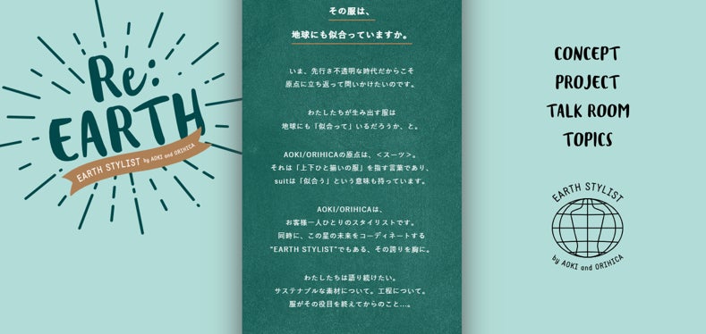 株式会社AOKI(代表取締役社長:森裕隆)は、2024年6月19日(木)に、SDGs(持続可能な開発目標)への取り組みを紹介する特設サイト『Re: EARTH』をオープンいたしました。本サイトでは、AOKIとORIHICAが展開するさまざまなサステナブルな活動をご紹介しており、お客様と共に地球の未来を考える機会を提供してまいります。特設サイト: https://www.aoki-style.com/special/sdgs/