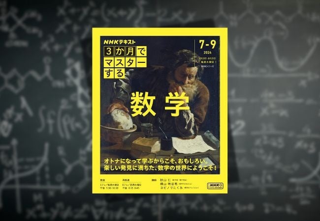今年4月に放送がスタートしたNHK「3か月でマスターする」シリーズ。第2弾7~9月のテーマは「数学」です。テキスト(2024年6月19日/NHK出版刊)では、円周角の性質、三平方の定理、確率、図形……など、中学・高校数学でつまずきがちなテーマをわかりやすく解説。さらに、日常で役立つ数学的思考法も紹介。苦手だった人も数学と仲よくなれる1冊です。