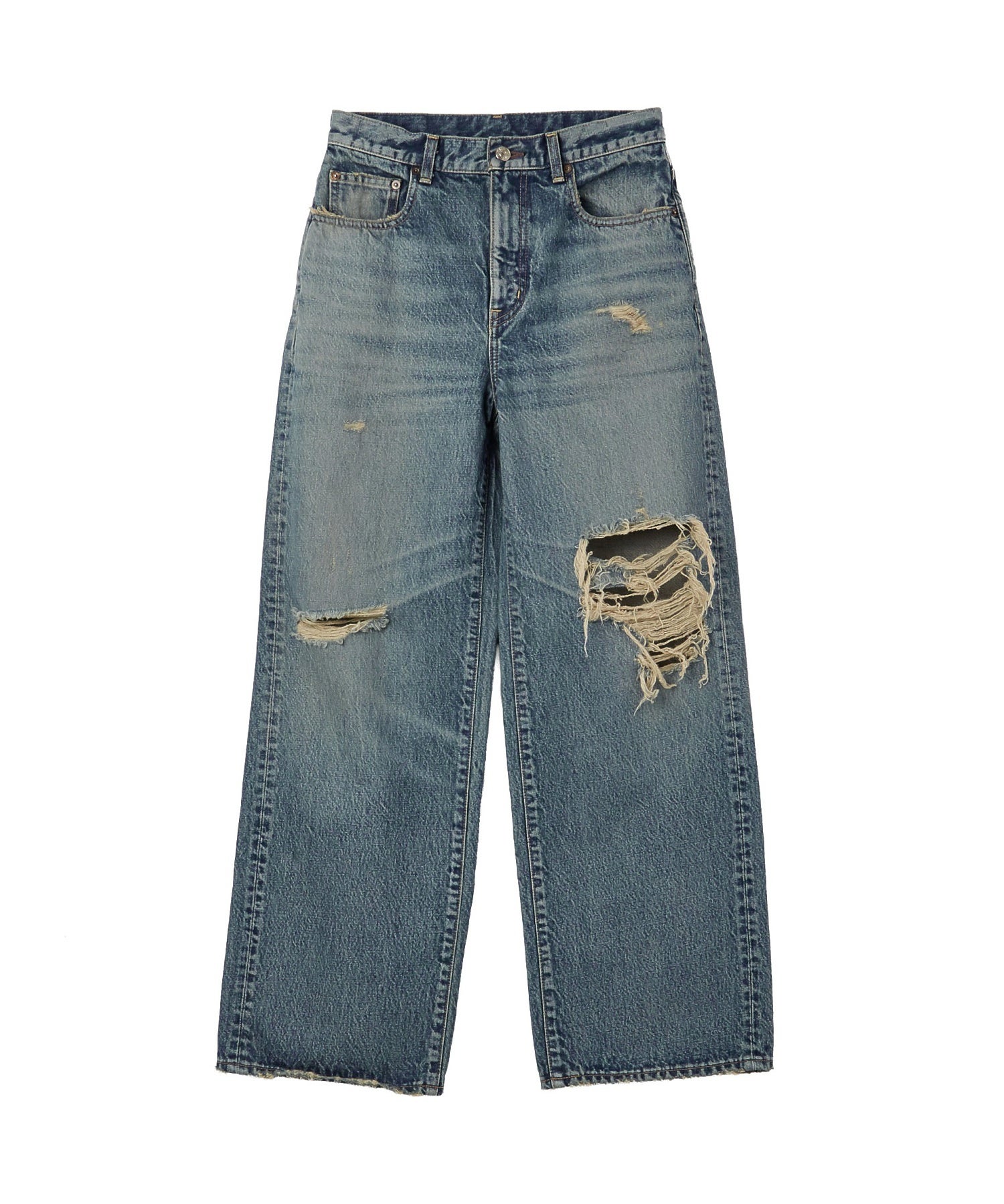 日本の加工技術で丁寧に仕上げた、ヴィンテージ感にこだわったワイドストレートジーンズ。