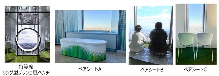 また、昨年販売直後に完売した、より特別感を味わえる1名限定のリング型ブランコ風ベンチや10組20名限定ペアシートなどをご用意。初日の出が見えやすい東面の窓、最前列に設置された席から2025年最初の太陽が昇ってくる様子を存分にお楽しみいただけます。2025年の始まりをサンシャイン60展望台 てんぼうパークで過ごしてみてはいかがでしょうか!