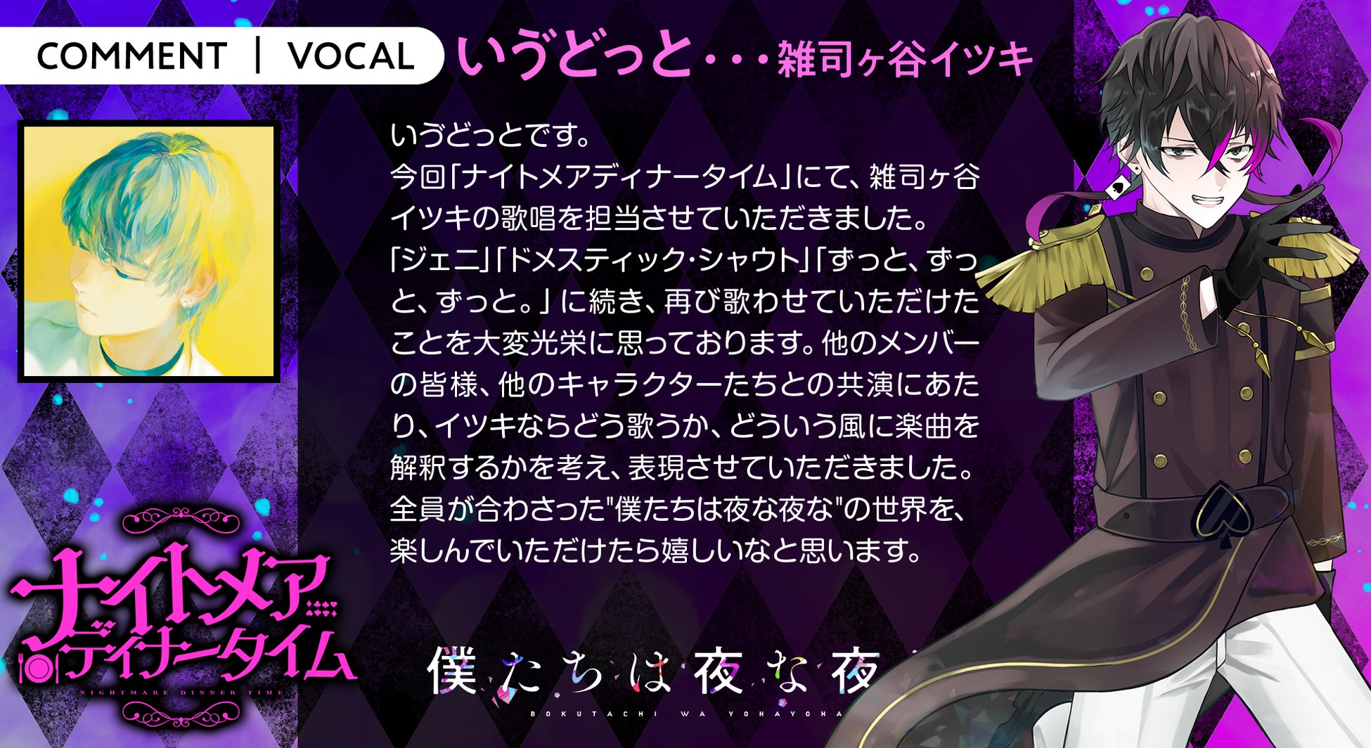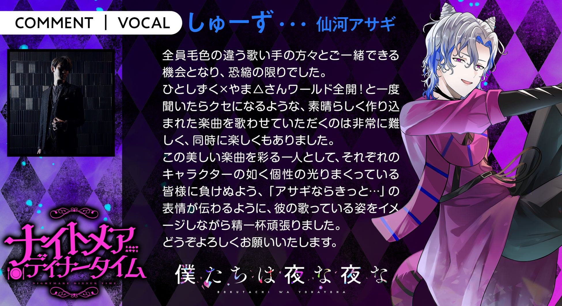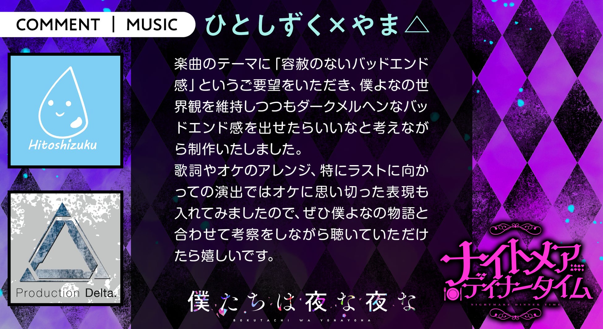 ボカロP×歌い手×声優「僕たちは夜な夜な」新曲『ナイトメアディナータイム』MV公開! ひとしずく×やま△・梓川・いゔどっと・しゅーず・Sou・ふぉるてからのコメント到着!