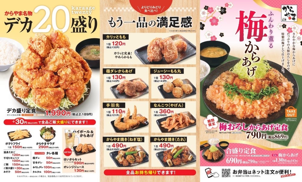 なお、「からやま」だけでなく、テイクアウトのからあげ専門店「からあげ縁」では「梅からあげ」と2種類のお弁当をご用意しております。