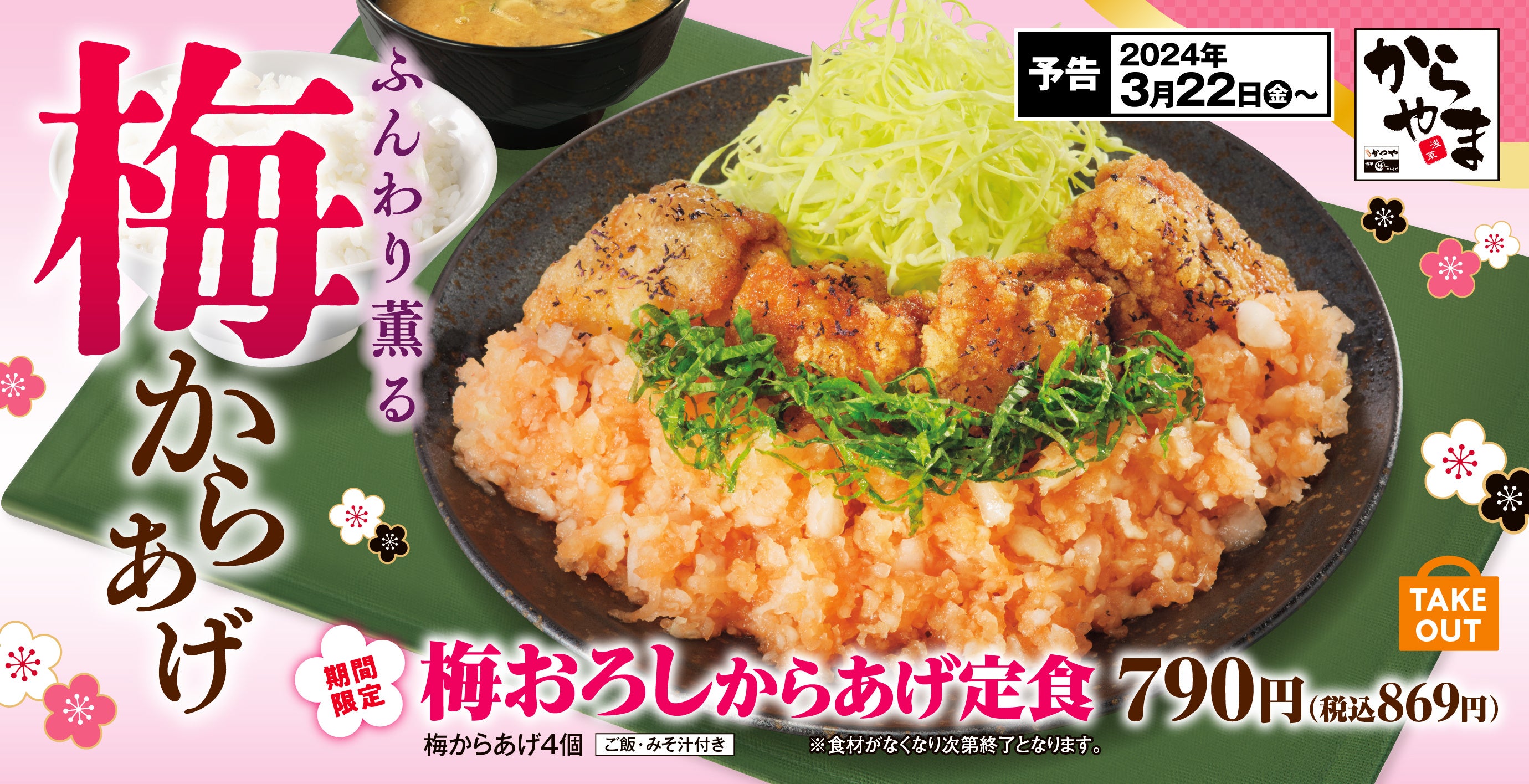 爽やかに薫る梅をからあげ定食で!2024年3月22日(金)より期間限定で販売開始