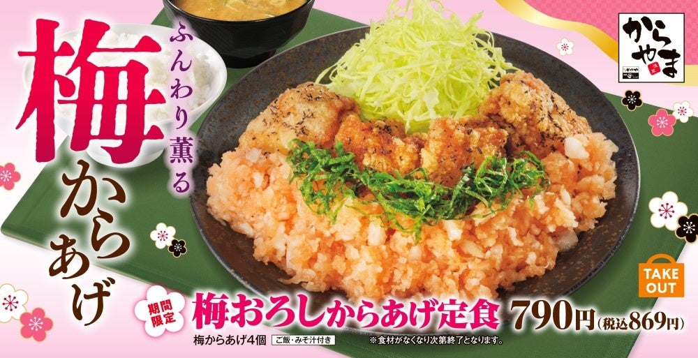 【春の便り】ご要望にお応えして「梅おろしからあげ定食」がからやまで販売開始!