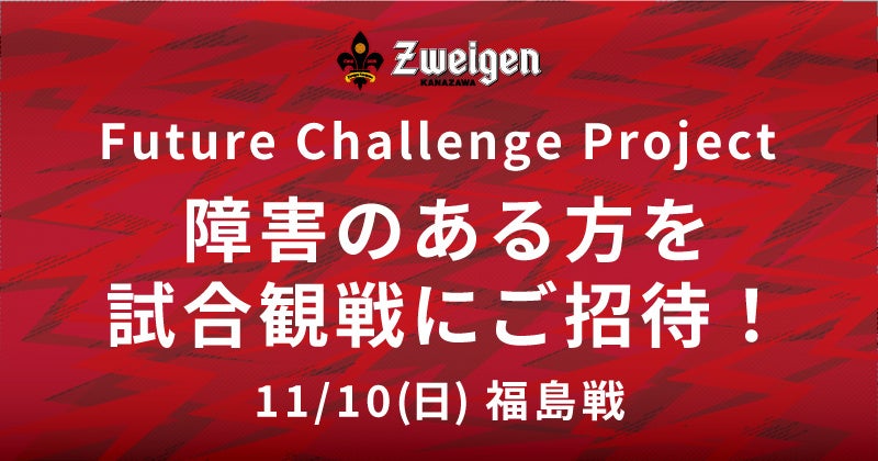 11月10日(日)福島ユナイテッドFC戦にて、誰もが共に暮らし続けられるまちづくりを目指す「Future Challenge Project」の一環として、障害のある方を試合観戦にご招待いたします。