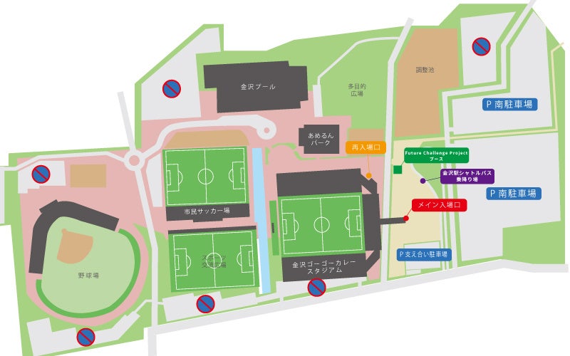 ※会場の詳細なマップはこちらをご確認ください。(https://www.zweigen-kanazawa.jp/game/stadium/)