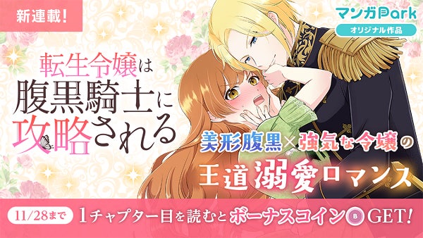 美形腹黒×強気な令嬢の王道溺愛ロマンス新連載「転生令嬢は腹黒騎士に攻略される」11月22日からマンガParkで連載開始! コイン配布の新連載記念キャンペーンも実施!